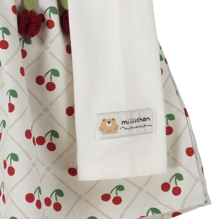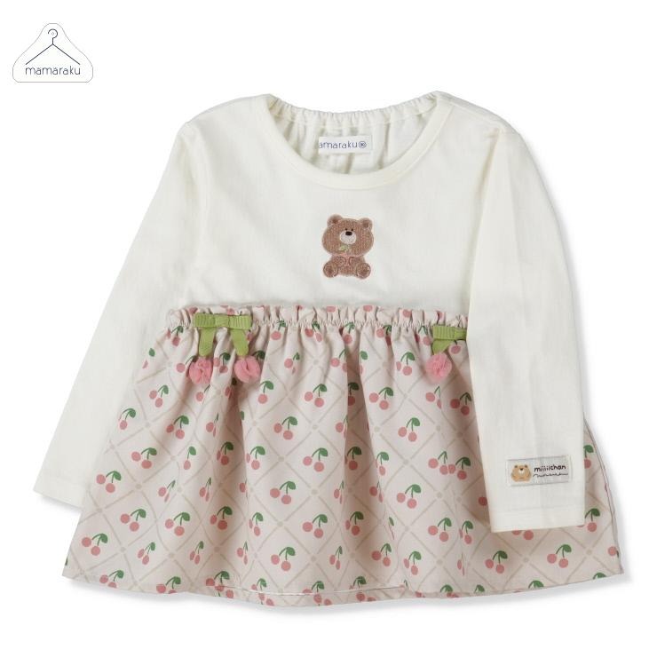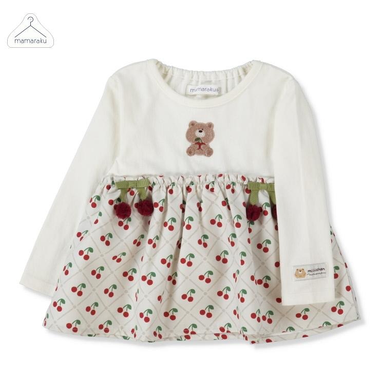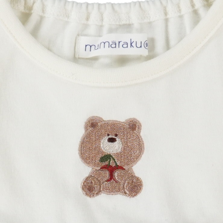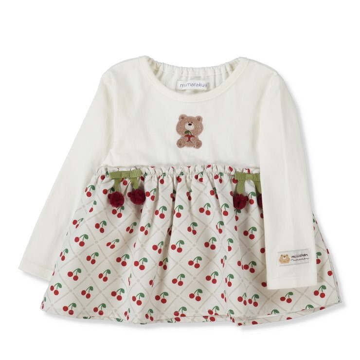 クマの刺しゅうとサクランボの総柄プリントがキュートなトップスです。