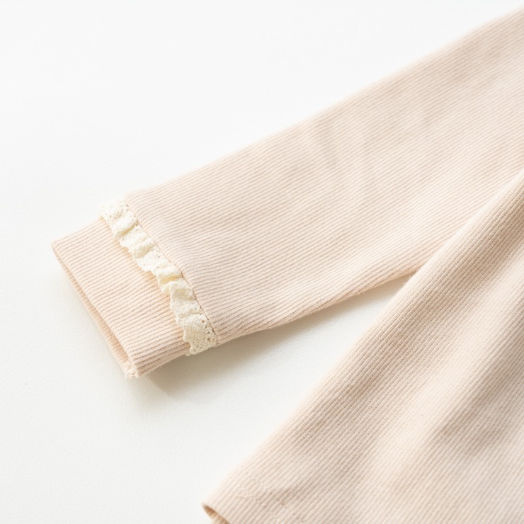 素材感をいかしたシンプルなデザインに首元の配色使いがアクセントになっています。