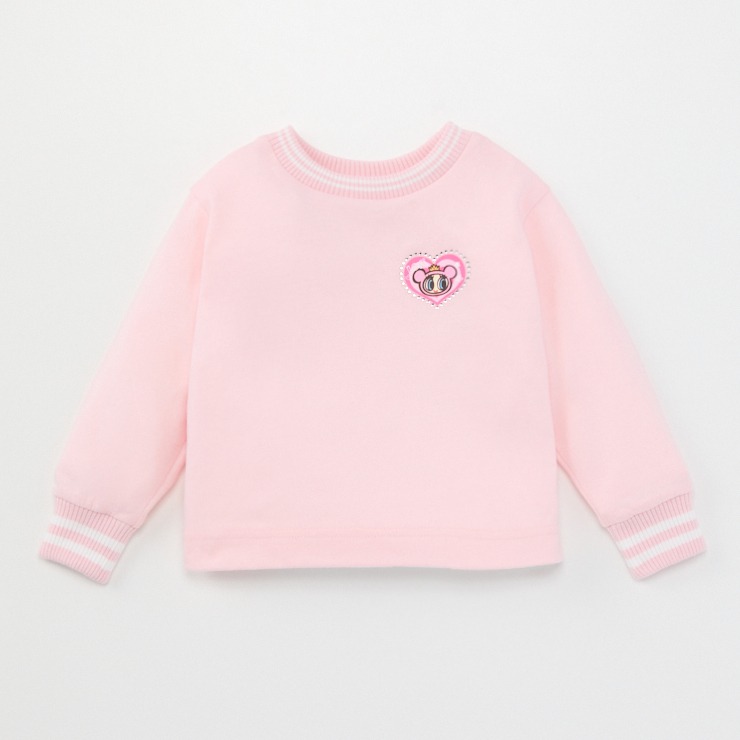 フロントのハート型ラインストーンや、ステッカーを貼ったようなプリントが遊び心のあるデザイン。
