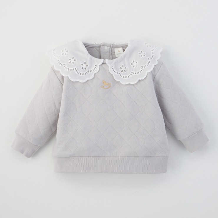 レースの襟に木馬の刺しゅう使いがはいったガーリーなデザインになっています。