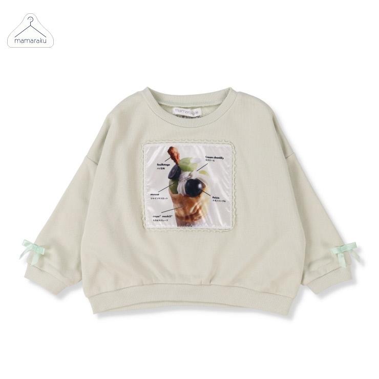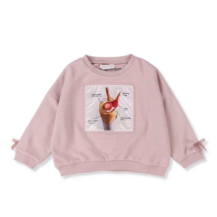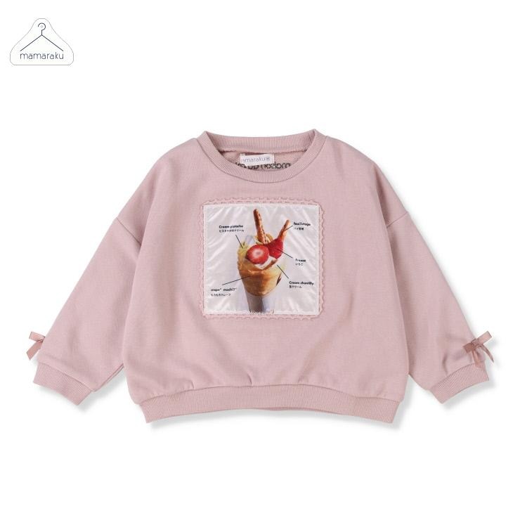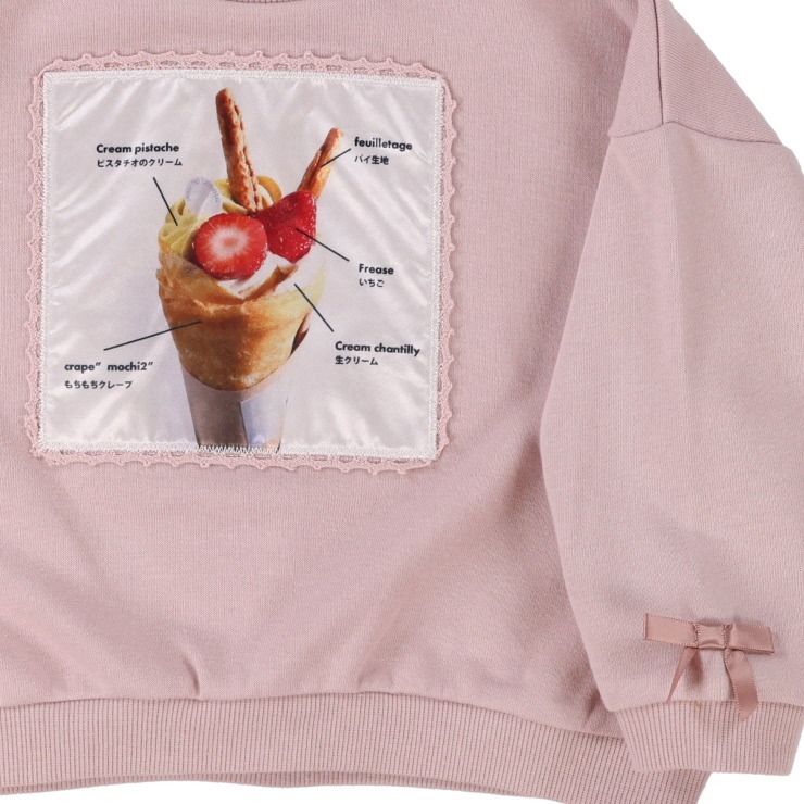 フルーツとクリームがたっぷりのおいしそうなクレープを大きくプリントしたトップスです。