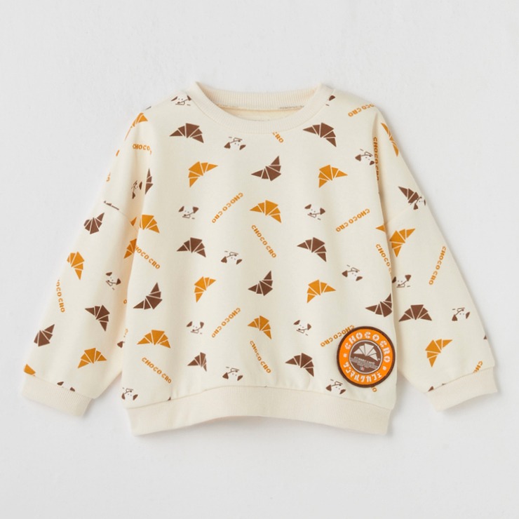チョコクロとチョコクロ犬の総柄プリントがかわいいトップスです。