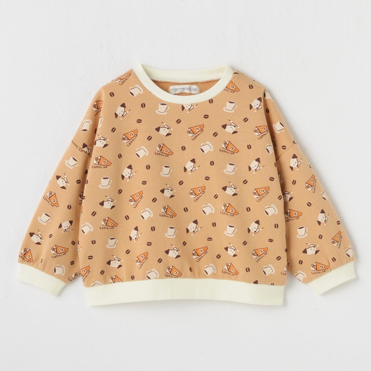 チョコクロとチョコクロ犬の総柄プリントがかわいいトップスです。