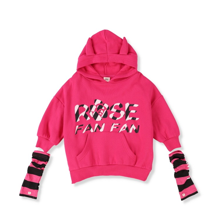 ROSE FAN FAN のフードに耳が付いたプルオーバーです。アームカバー付きです。