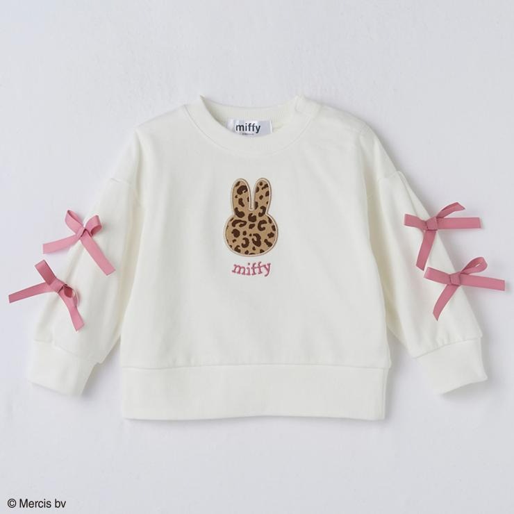 ヒョウ柄のmiffyのアップリケと袖のリボンがとてもかわいいデザインです。