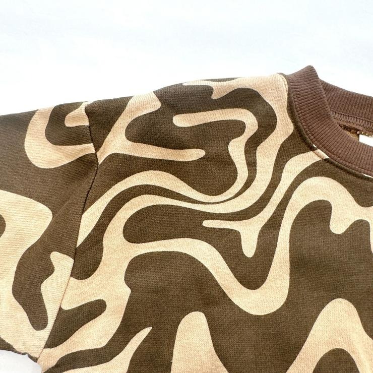 ブラウンカラーのおしゃれな総柄プリントデザインになっています。