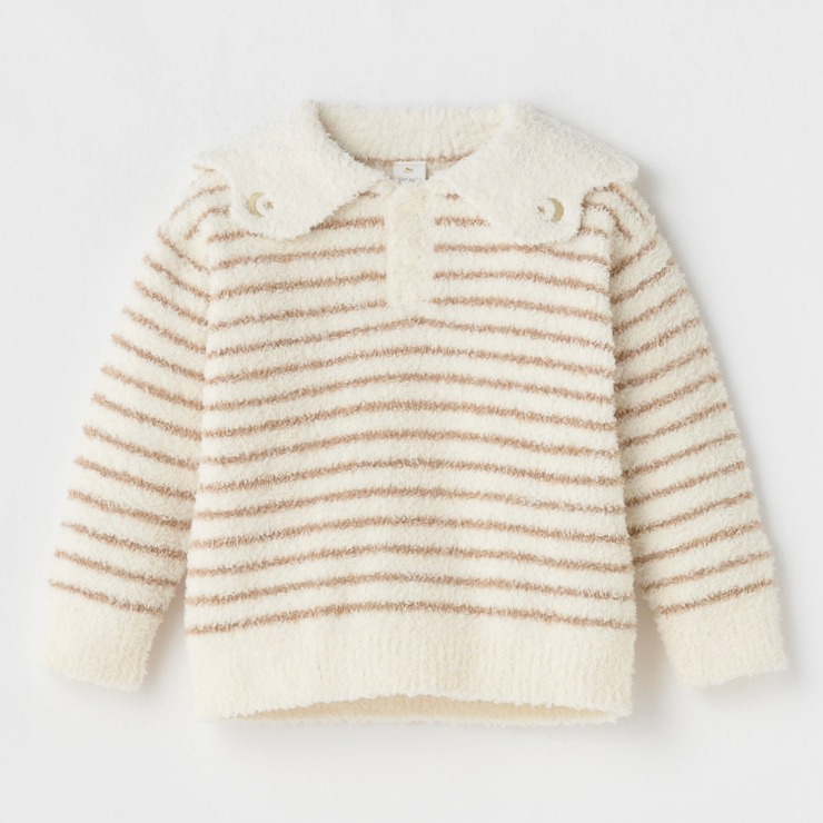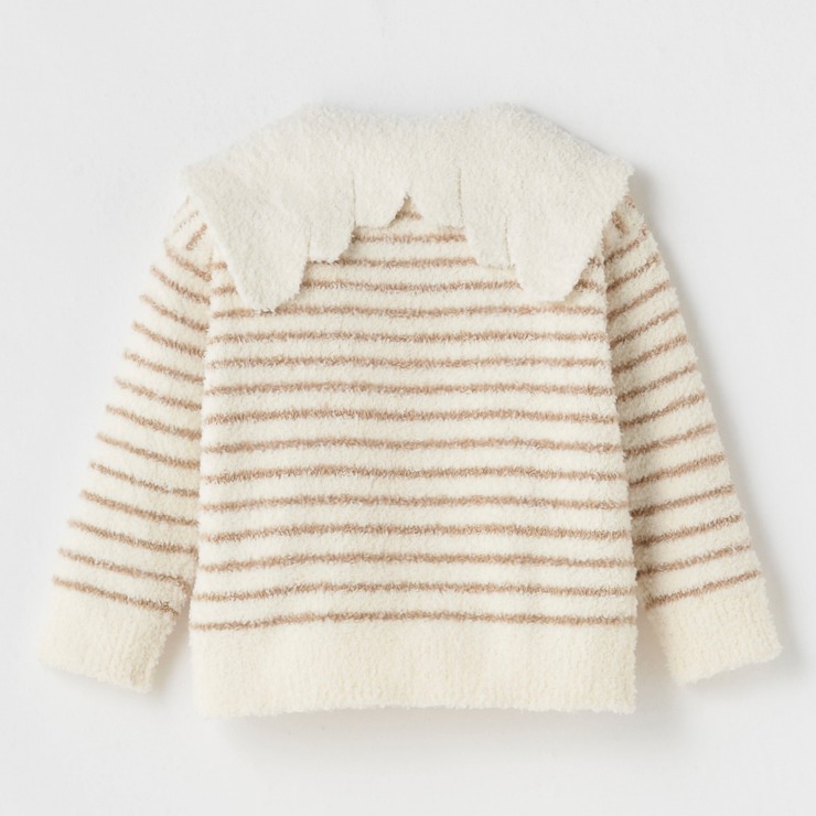 ボーダー柄に天使の羽根のような衿がついたかわいらしいデザインになっています。