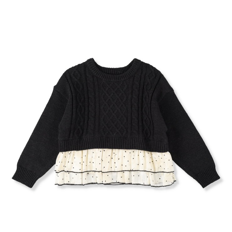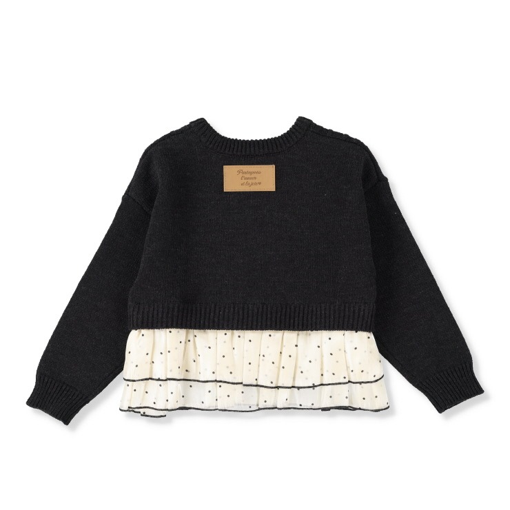 ふわっと広がるドット柄のオーガンジーがキュートなトップスです。