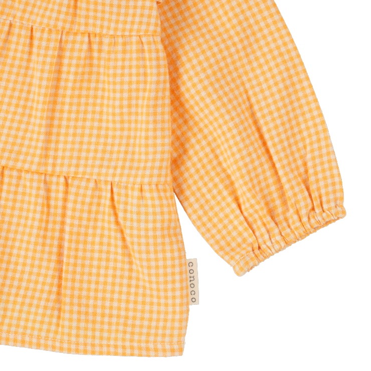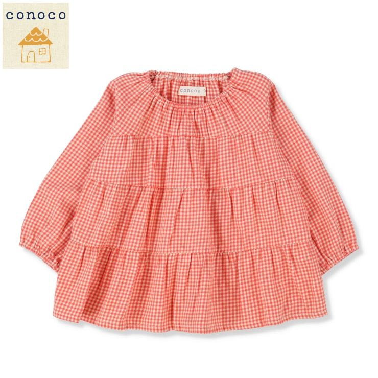 春の定番ギンガムチェックが主役、愛らしさあふれるブラウス風プルオーバーです。