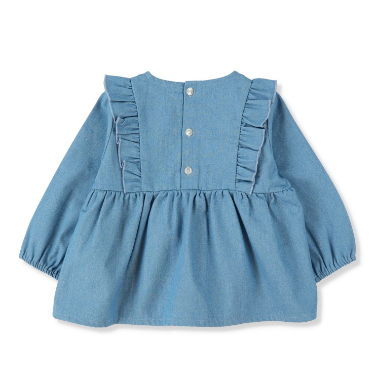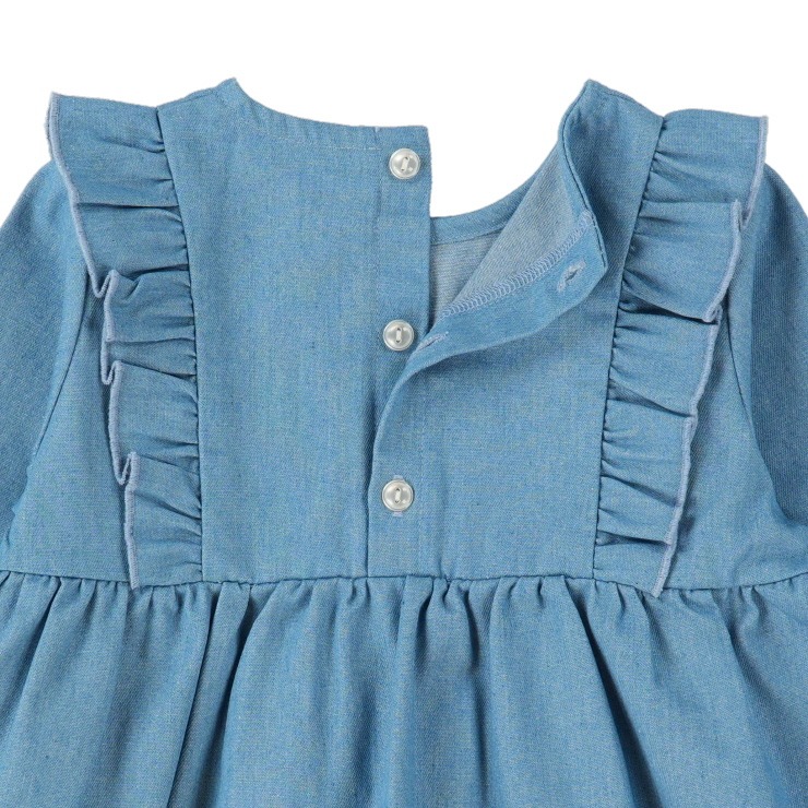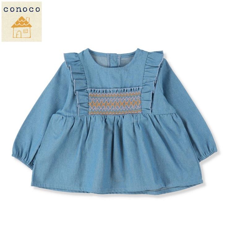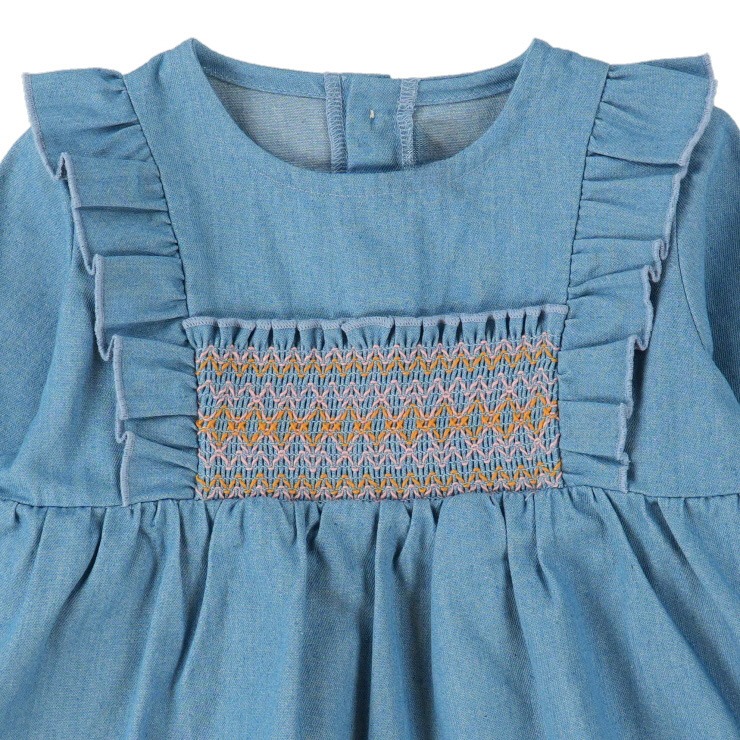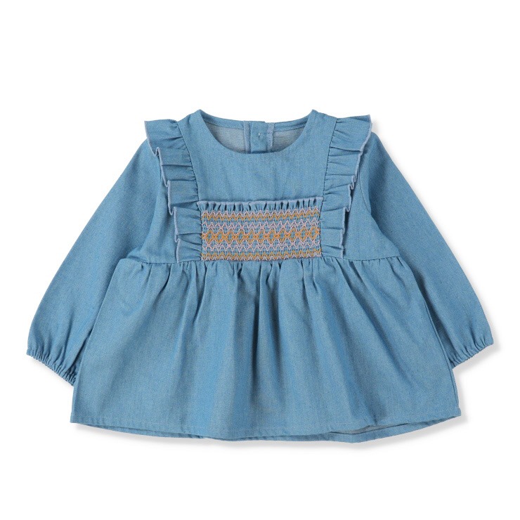 着るだけで一気に高見え!ライトオンスデニムのカジュアルさに、スモッキング刺繍とフリルで甘さをプラスしたブラウス風チュニックです。