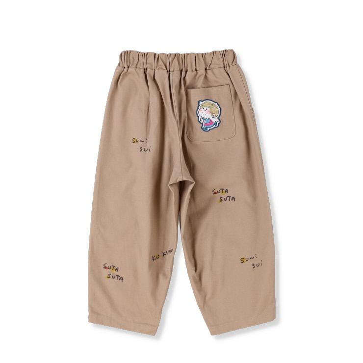 人気イラストレーター水森亜土のキュートなキャラクターが散りばめられたパンツ。