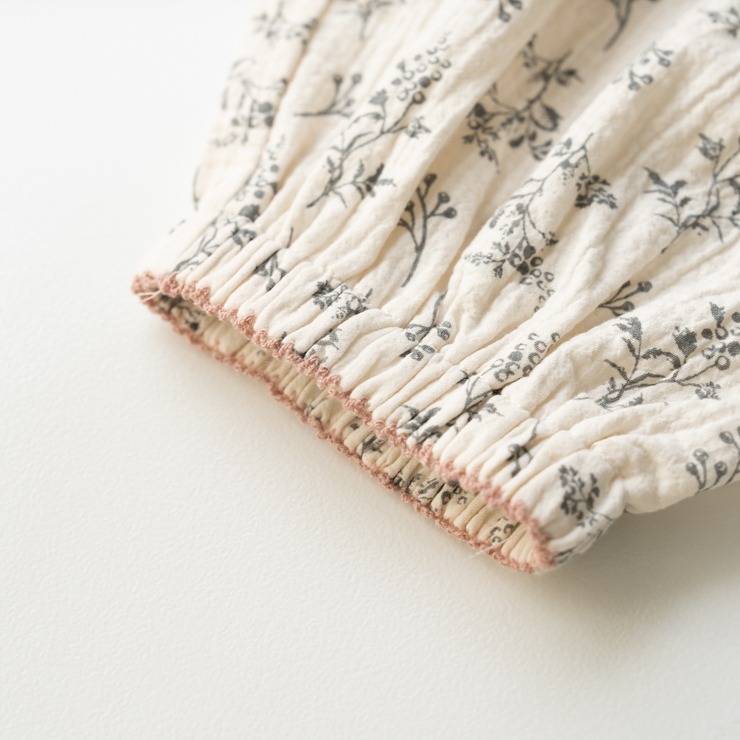 やさしい素材感のボタニカル柄がかわいいです。