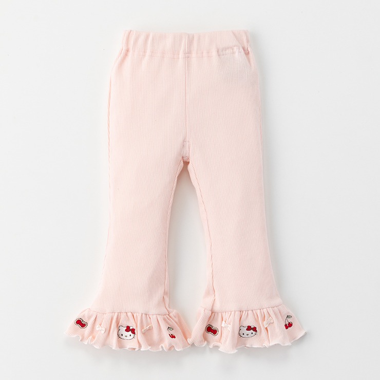 裾のフリル切替に『ハローキティ』の「キティ」の刺しゅうとリボンがついたガーリーなデザインになっています。