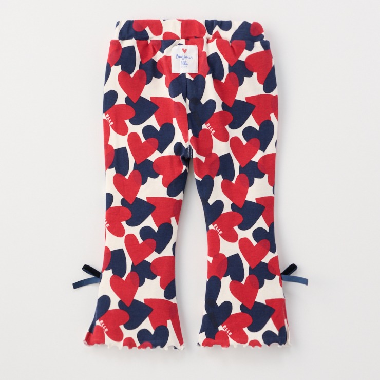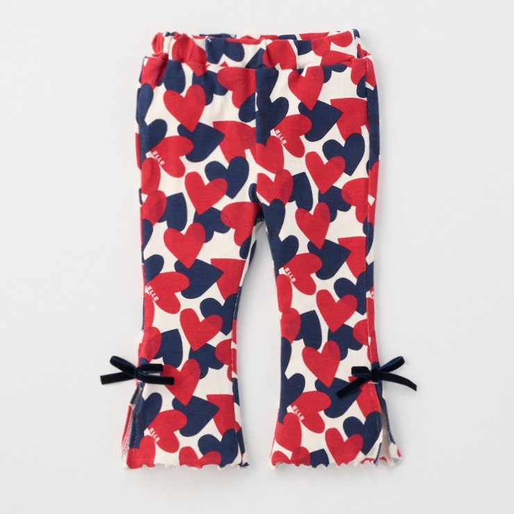 ハートがいっぱいの総柄デザインにベロアリボンがアクセントになっています。