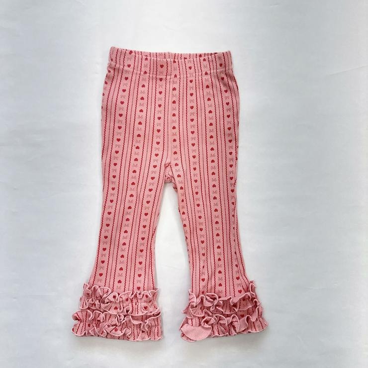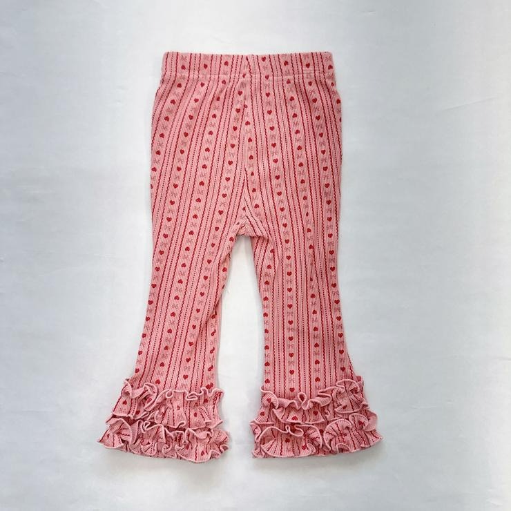 ハートの総柄がかわいい綿100%のテレコ素材を使用したレギンスパンツです。