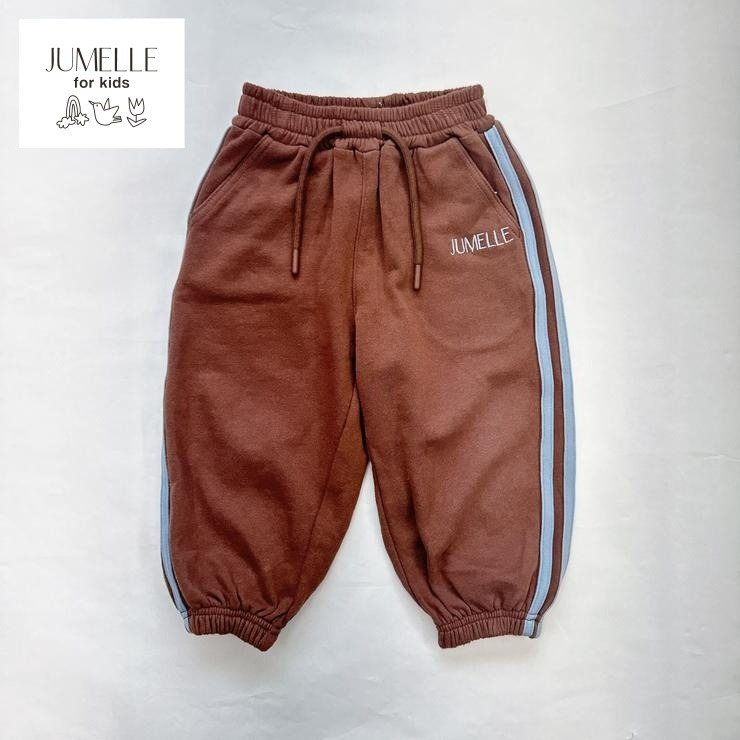 ブラウンとサックスブルーの色使いがかわいい綿100%の裏毛素材を使用したロングパンツです。