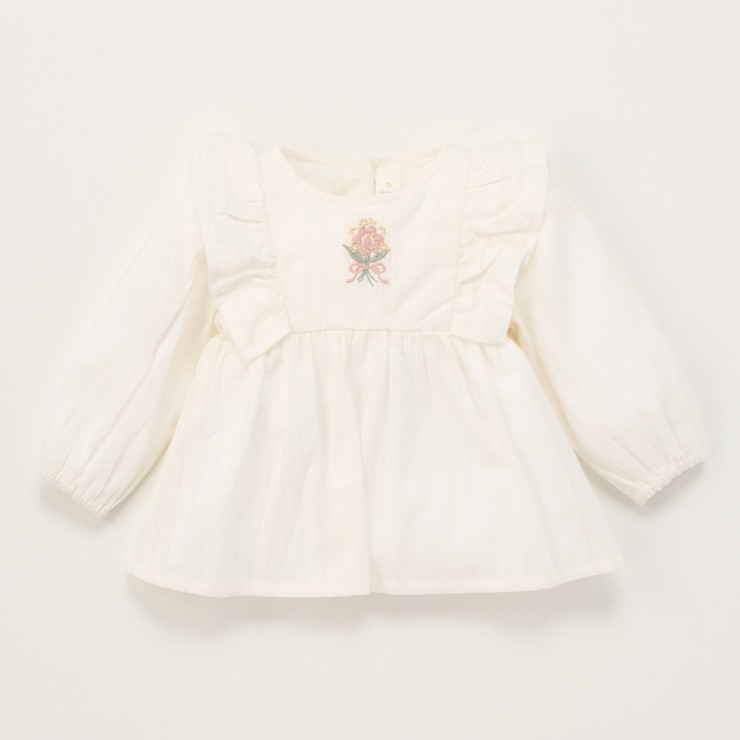 ふんわりとした丸みのあるシルエットにお花の刺しゅうがアクセントになっています。