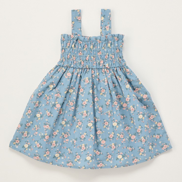 <花柄ワンピース>総丈:50.5㎝ 身幅:21㎝ 袖丈:0㎝