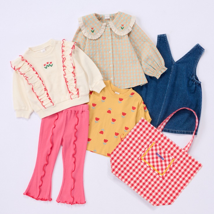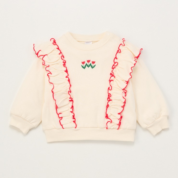 大きなフリルにチューリップの刺しゅうがアクセントになっています。。