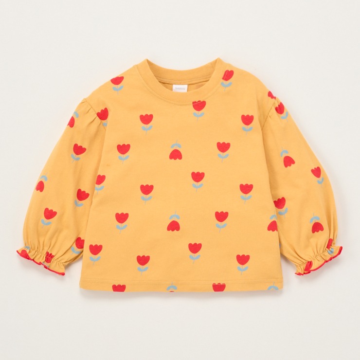 お花モチーフの総柄プリントや袖のギャザーデザインがかわいいです。