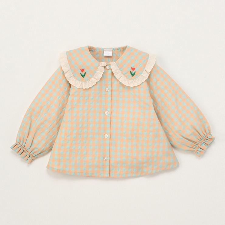 レースがついた襟にチューリップのさりげない刺しゅう使いがポイントです。