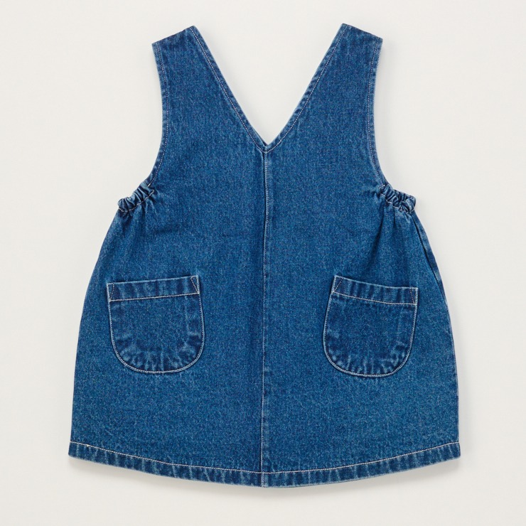 綿100%のデニム素材を使用したジャンパースカートです。
