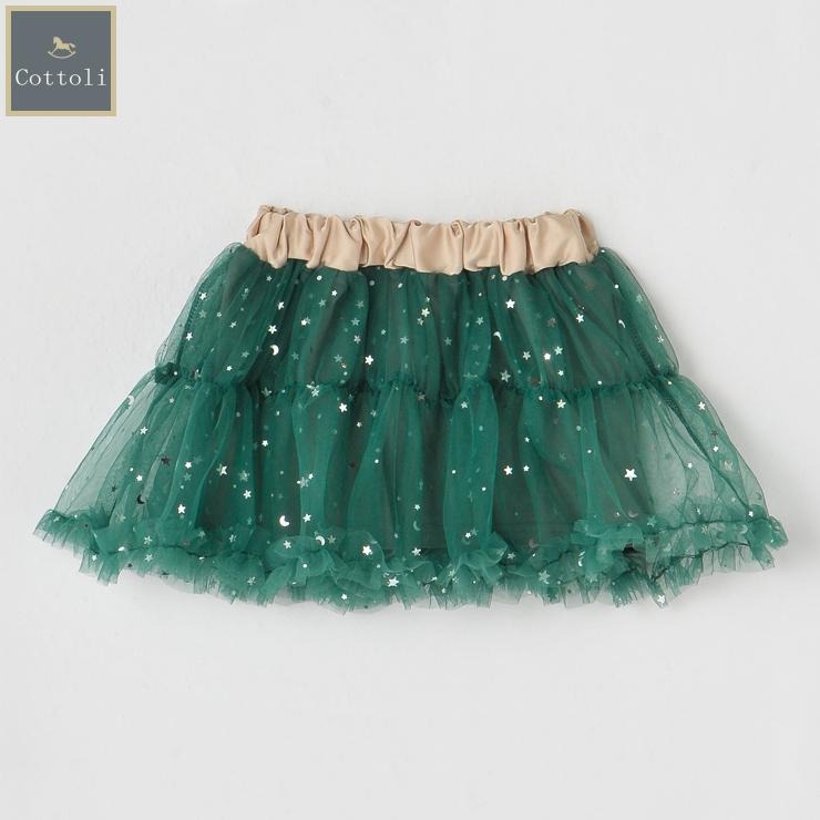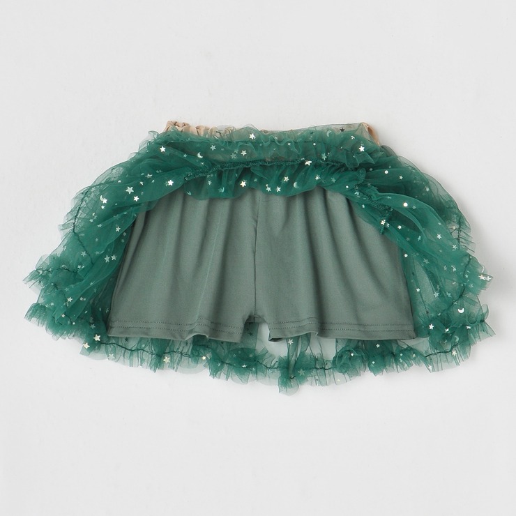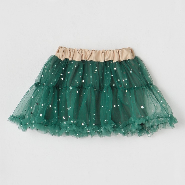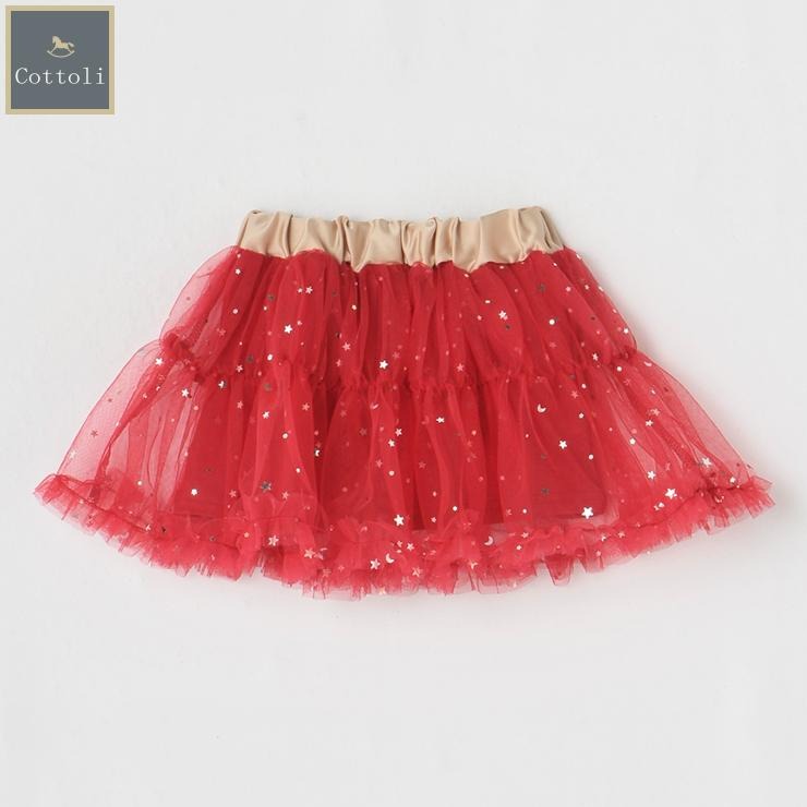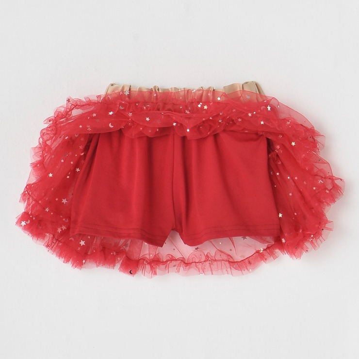 キラキラとしたお星さまがついたチュール素材がかわいいスカートです。
