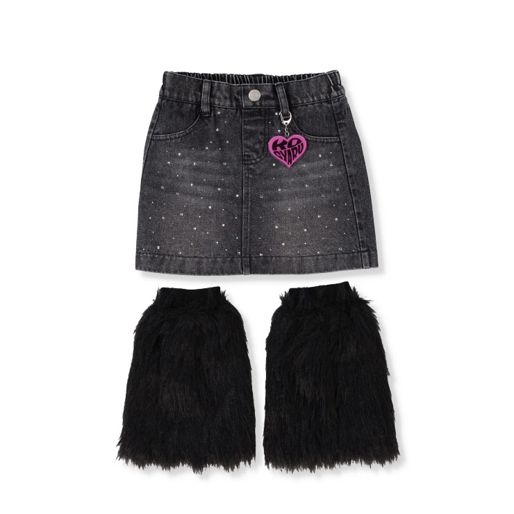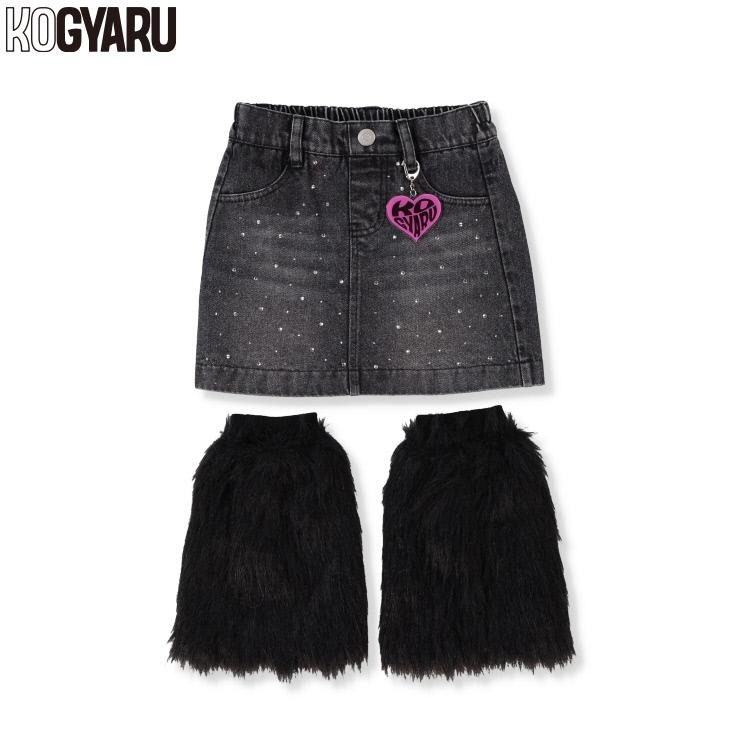 クールな印象のデニムスカパンにふわふわファー素材のレッグカバーのセットです。