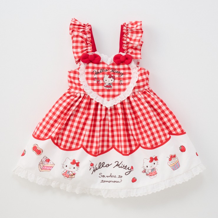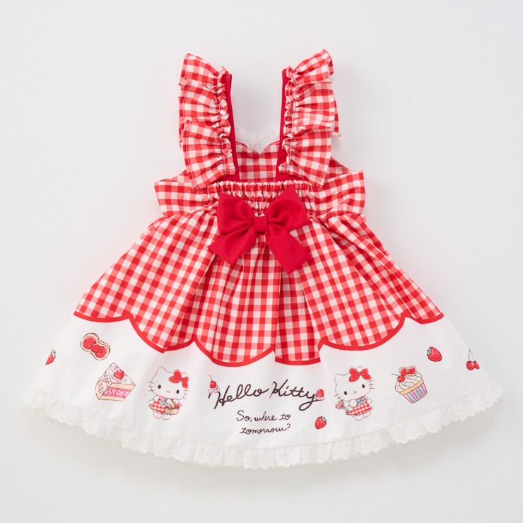『ハローキティ』をイメージした赤いギンガムチェックがかわいいワンピースです。