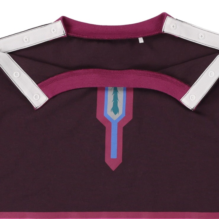 また、大きく開くことで顔周りの医療的ケアに引っかかりにくくなっています。抱きかかえた時に背中が出ないように着丈を長めにしてあります。