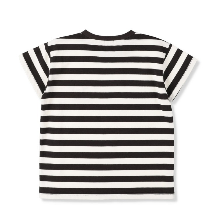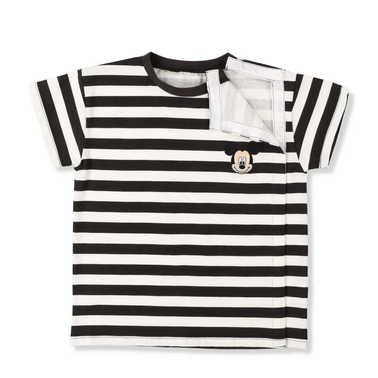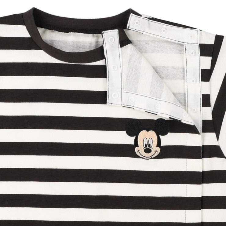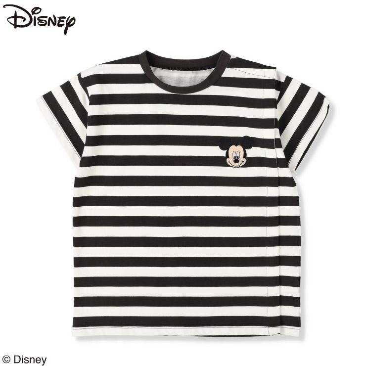 ボーダープリントにミッキーの刺しゅうがポイントのTシャツです。