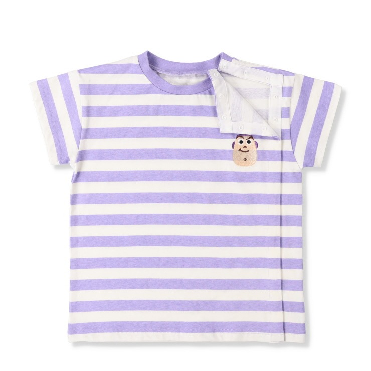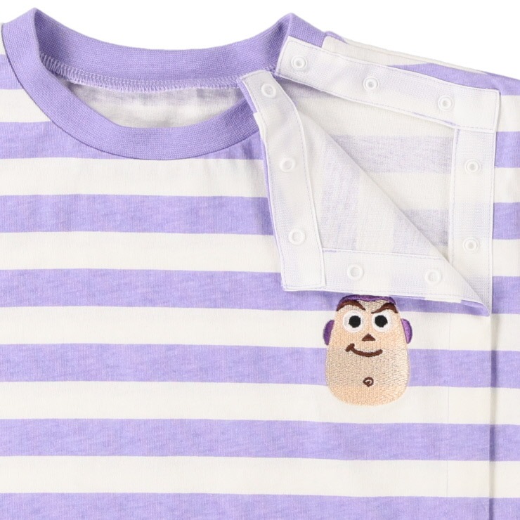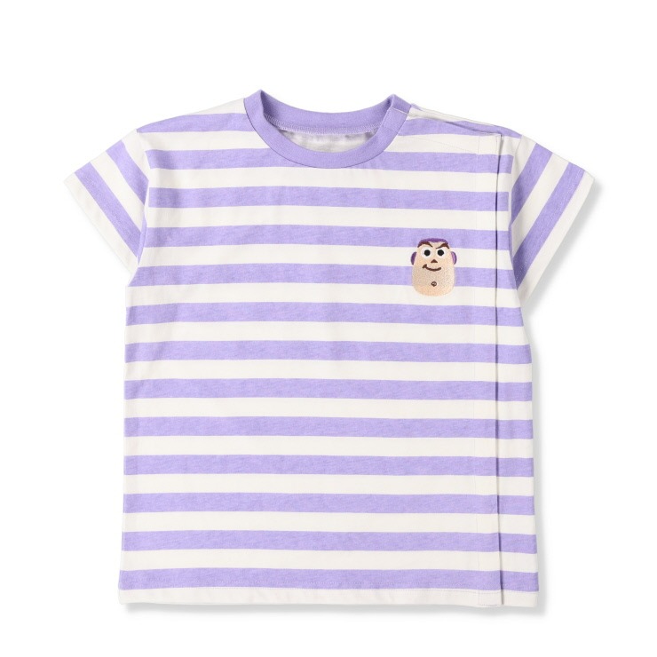 ボーダープリントにバズの刺しゅうがポイントのTシャツです。