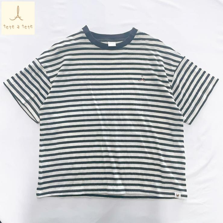 すっきりとしたボーダー柄に刺しゅう使いがアクセントになっています。