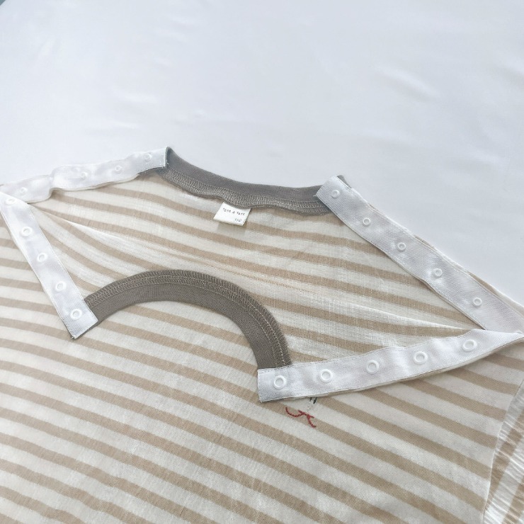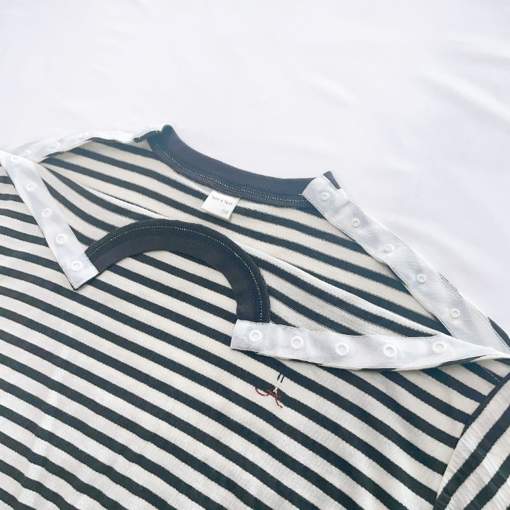 両肩にボタンを付けて首回りが大きく開くようになっています。