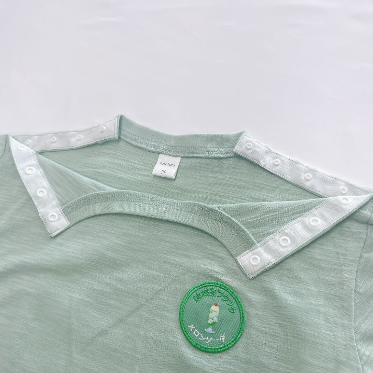 首回りが大きく開くことで顔周りの医療的ケアに引っかかりにくくなっています。