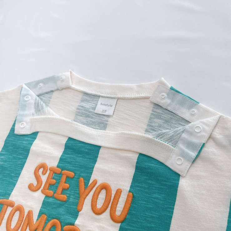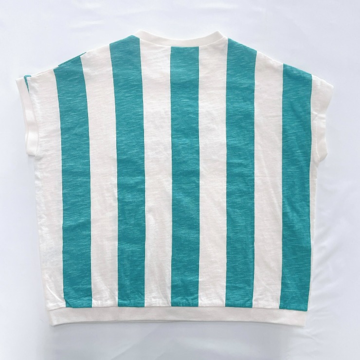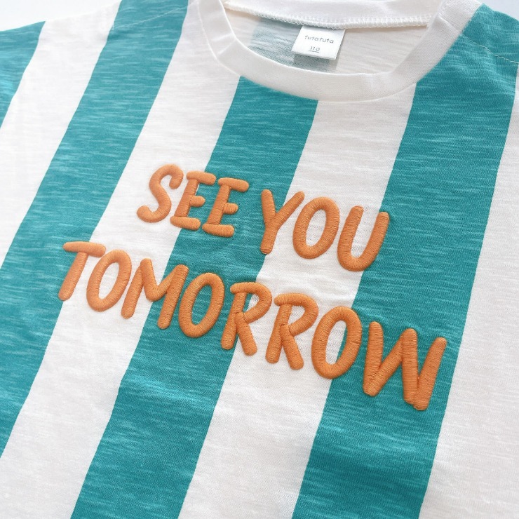 ストライプ柄に立体の刺しゅうがのったかわいいデザインです。