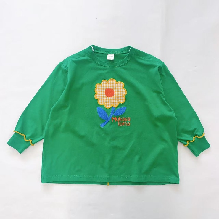 お花のアップリケデザインがかわいい長袖Tシャツです。