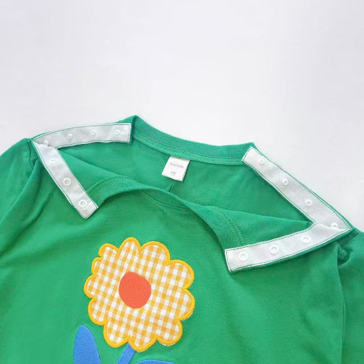 首回りが大きく開くことで顔周りの医療的ケアに引っかかりにくくなっています。