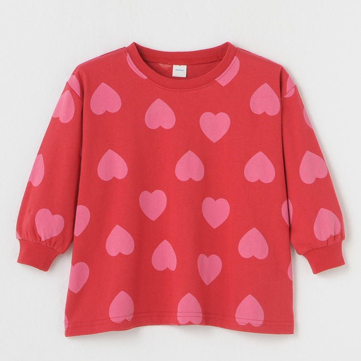大きなハートがいっぱいのポップな総柄プリントになっています。