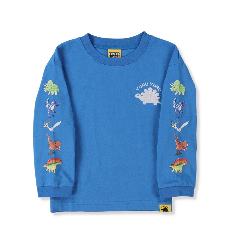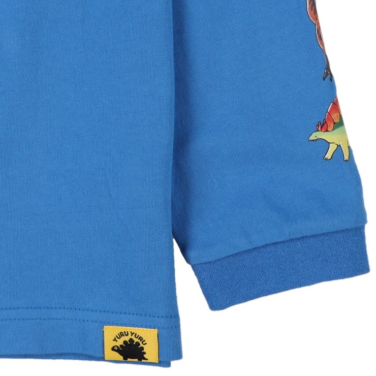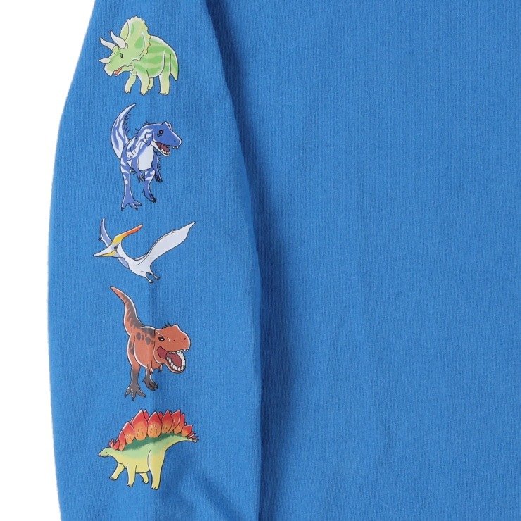 カッコいい恐竜プリントのほかに、胸元にはかわいい恐竜の刺繍が入っています。