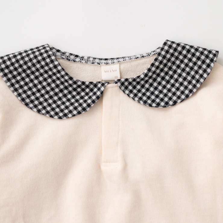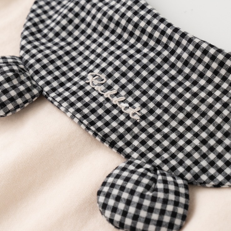 丸い耳がついた大きなチェックの襟デザインがかわいいです。