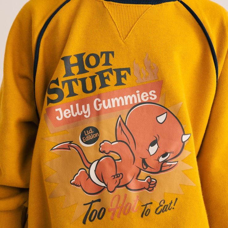 1957年に誕生したアメリカンコミック『ホット・スタッフ』のいたずら好きな小悪魔「ホット・スタッフ・ザ・リトル・デビル」のプリント使いがかわいいです。