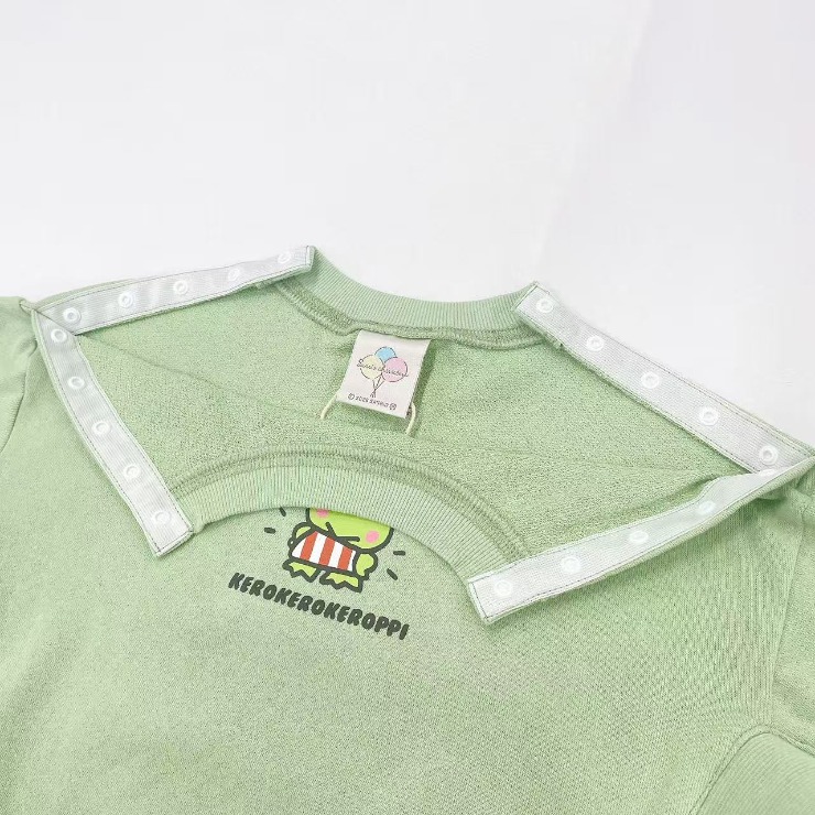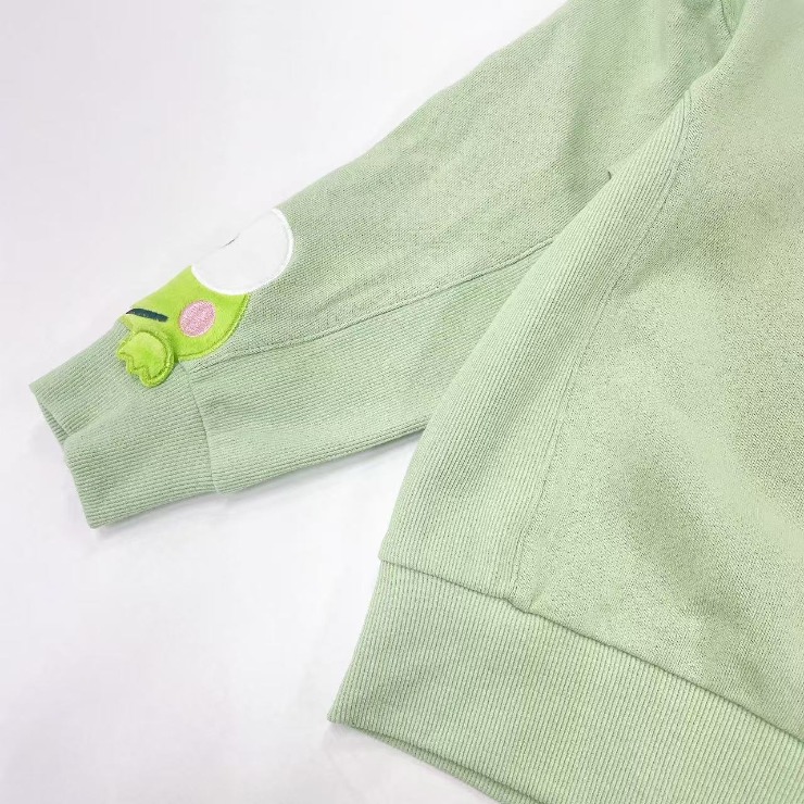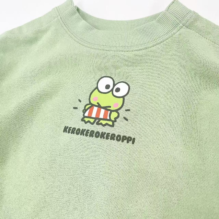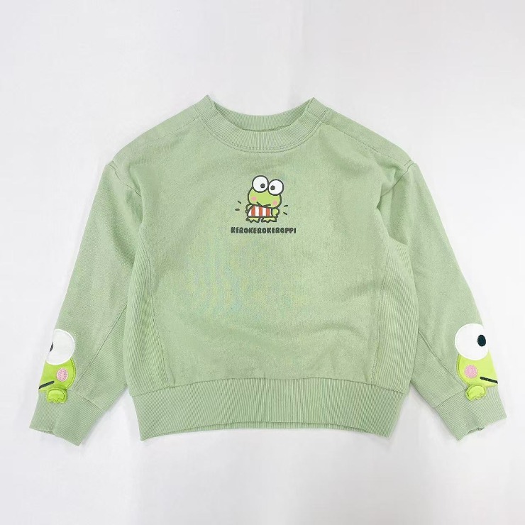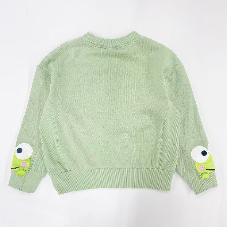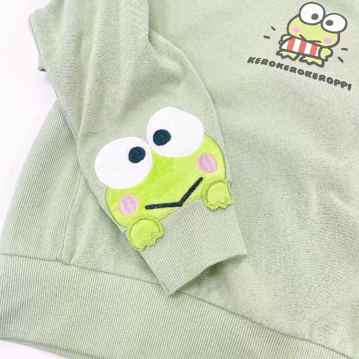 けろけろけろっぴのボアを使用した袖のアップリケデザインがかわいいです。