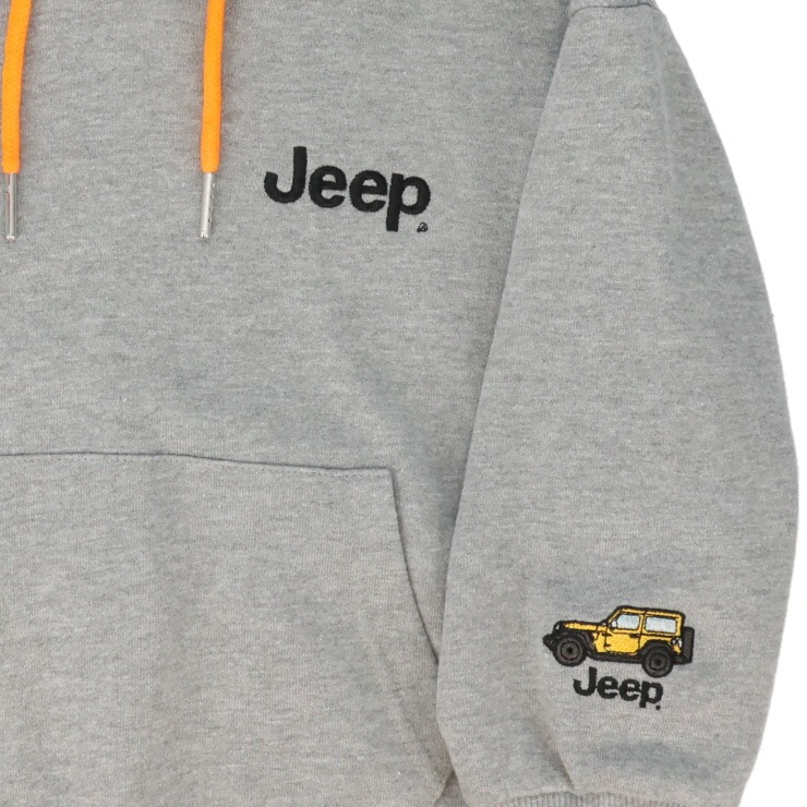 胸のロゴや袖口の車の刺しゅうなど、Jeepブランドならではの遊び心あるデザインが魅力的です。