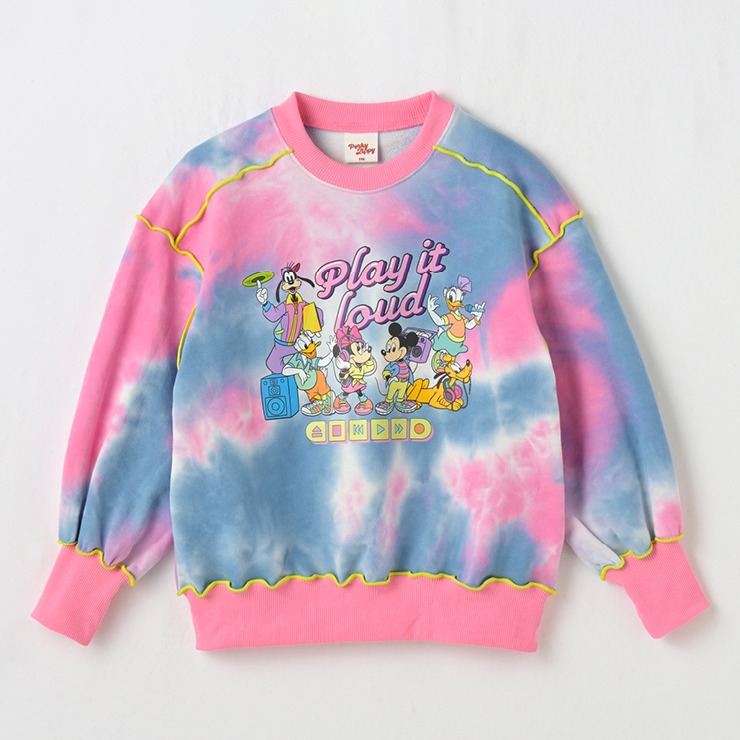 タイダイプリントにメロウ刺しゅうがアクセントになっています。「ミッキー&フレンズ」のポップなプリントがかわいいです。