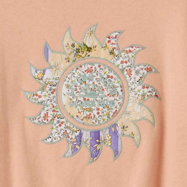 スポーティーな首元のガゼットに太陽モチーフのアップリケデザインがおしゃれです。
