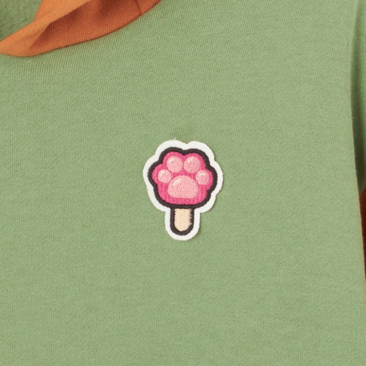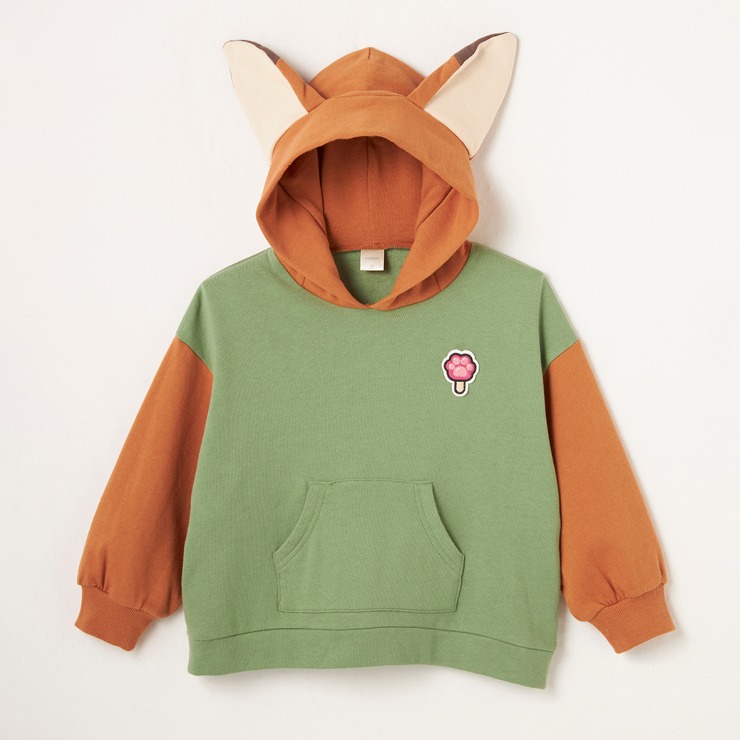 長い耳がついたフードに刺しゅうデザインがアクセントになっています。