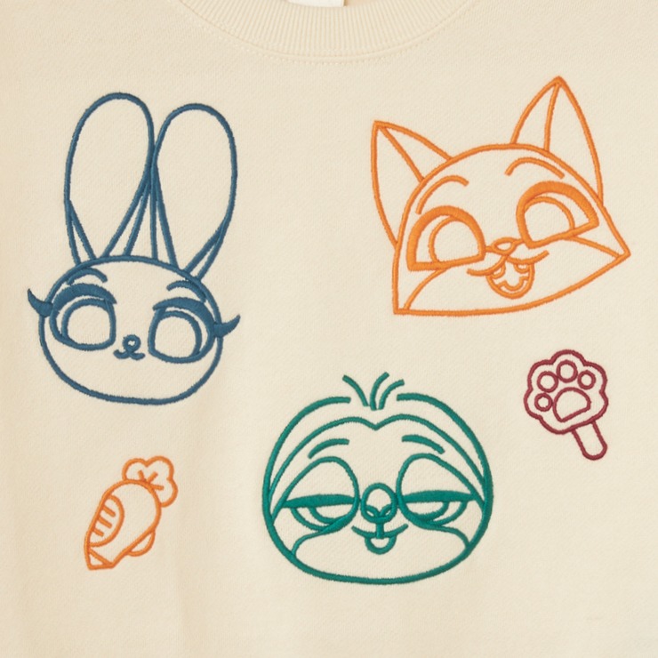 『ズートピア』の「ジュディ」、「ニック」、「フラッシュ」をモチーフにした刺しゅう使いがかわいいです。