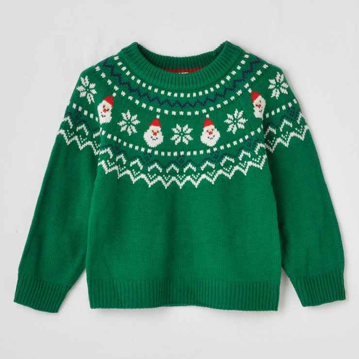 サンタクロースのモチーフを使用した編み柄のデザインがかわいいです。