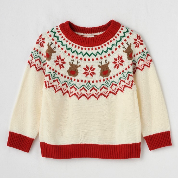 トナカイのモチーフを使用した編み柄のデザインがかわいいです。